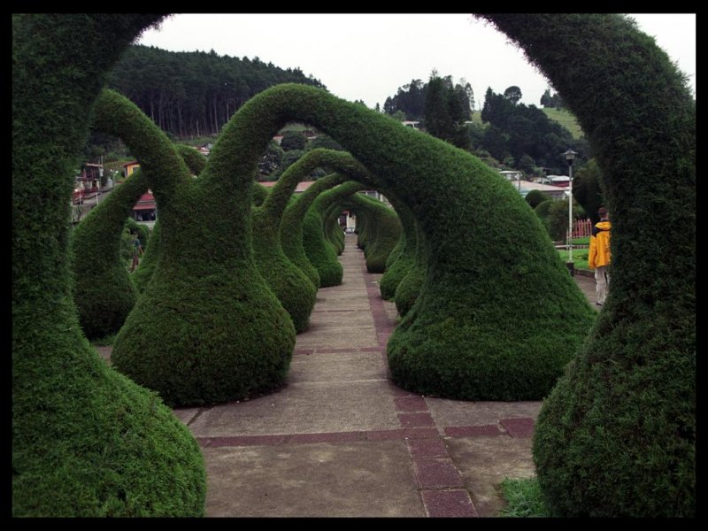 These are arches from a church in Costa Rica. I don't remember the name of the town, but all the bushes in the town were carved all neat into shapes.