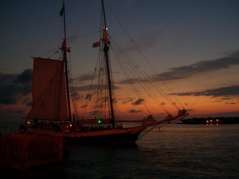 Pirate ship at sunset