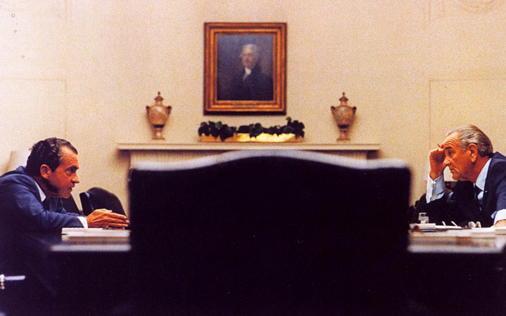 Johnson and Nixon - widescreen background! Public domain.